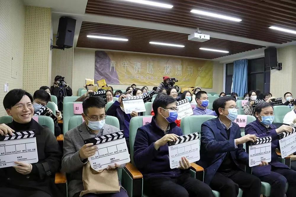 短片播放完毕后,与会领导嘉宾与全体观众举起活动主题板共同打板,此次原创短片展映活动正式启动。