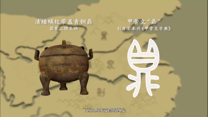 在了解到比赛主题是有关于“汉字”和“汉字文化”后,我们小组先是联想到了象形文字,随后在小组成员一起前往省博进行参观学习的过程中,我们萌发了将器物与象形字相结合的念头。在指导老师的建议下,我们从“象形字与器物背后的汉字文化”这个想法入手,每个人对这个主题都提出了许多想法,在充分开会讨论后,我们确定了“从器与物的交织演变中展现汉字文化”的创意。查阅了大量相关资料,我们最终选择确定了以作为食器的“鼎”和“鬲”,以及作为酒器的“壶”和“爵”作为器物的代表,并且参照《甲金篆隶字典》(魏励、刘志基、陈健编)和《甲骨文字典》(王本兴编)确定了本片中文字演变的形态。