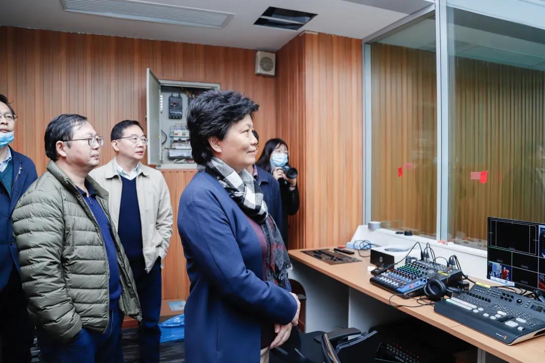 在学院党委书记罗贻文的陪同下,郝芳华一行人参观了全新的教学办公环境以及我院学生的专业实验室。参观过程中,郝芳华表示:“新楼新气象,期待新闻传播学院的发展登上新台阶。”