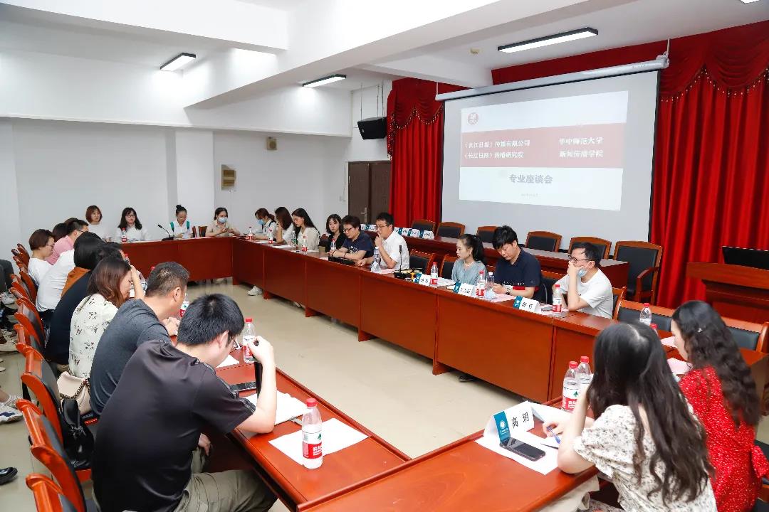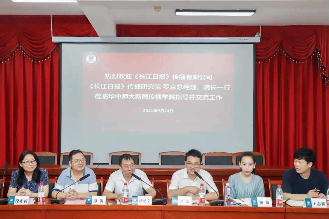 华新在线讯(记者 谢家兴)9月24日上午,长江日报传播研究院代表团到访我院,于九号楼八楼学术报告厅与我院师生举行学术座谈会。长江日报传播研究院院长、长江日报传播有限公司总经理罗京,传播研究院轮值院长杨蔚,传播研究院综合管理部主任王志新,创意事业部总监蒋哲,产业发展部主任王兴华,临空港编辑部主任黄金,江南编辑部主任李锐,以及武汉各区全媒体中心负责人出席会议。我院党委书记罗贻文,党委副书记程秀莉,副院长彭涛,新闻系学科带头人高海波,新闻系主任甘丽华,网络与新媒体系主任吴志远,广播电视系青年教师林吉安、王逊,以及研究生代表、毕业班本科生代表共同出席。本次座谈会由彭涛主持。