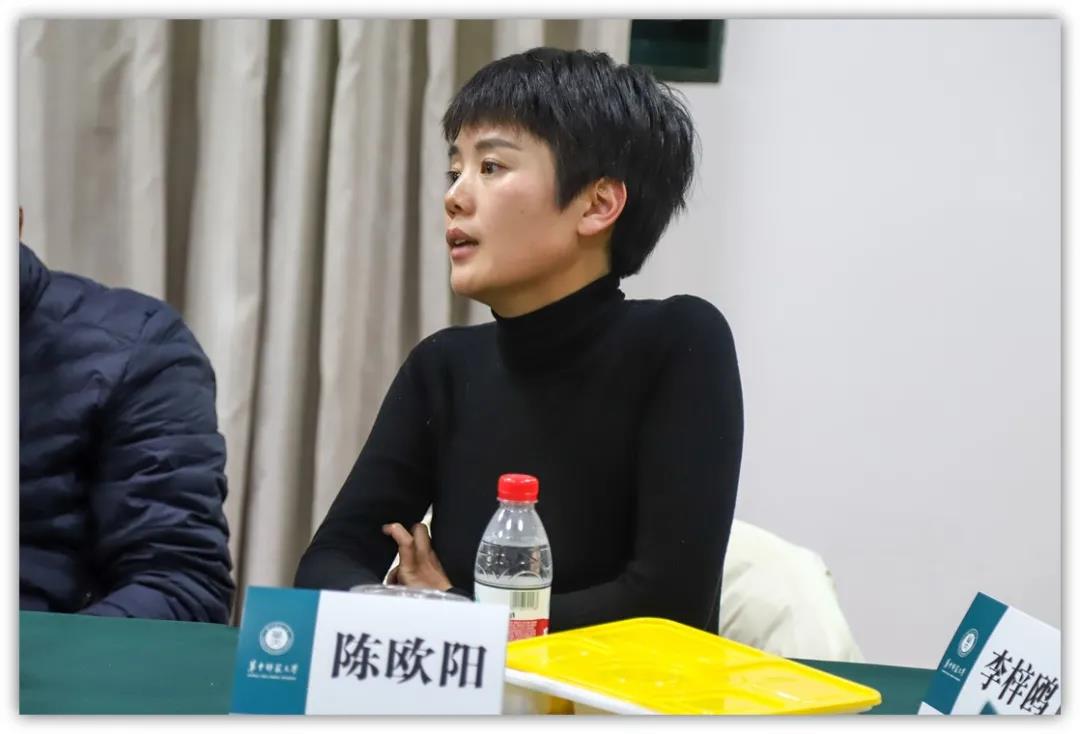 陈欧阳老师详细解答了20级穆依婷同学提出的“如何处理理论学习与实践关系”的问题。她认为,理论与实践不可割裂,二者相辅相成。“同学们可以通过社会实习、参加工作坊、参与老师的项目等途径将理论与实践结合起来。”陈欧阳老师补充道。