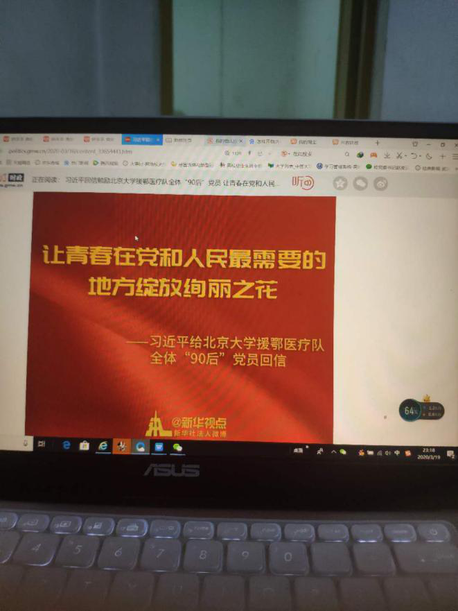 作为在武汉的“80后”党员,最近读到和看到“90后”甚至“00后”援鄂医疗党员、快递小哥、接送医护人员的志愿者等故事,深深感动并深受激励!
