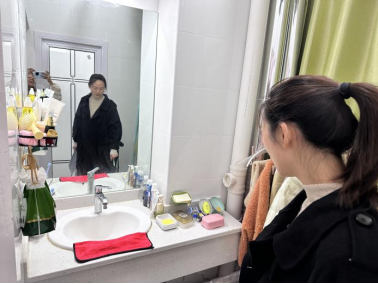 在宿舍风气方面,每个宿舍各有特色,但氛围都十分融洽且温馨。李老师对每个宿舍做整体评价,也对每个同学都进行了适当的关心。