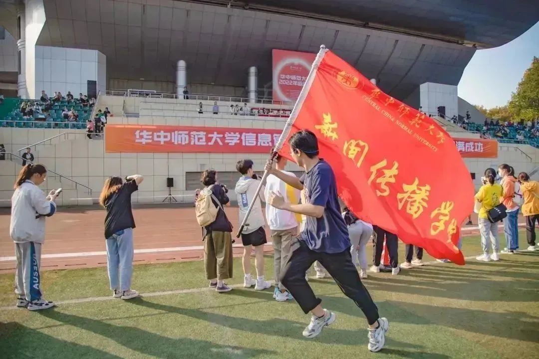 期间,我院陪跑同学扛着院旗追随着参赛选手,为选手们鼓劲,其他同学也始终在跑道旁呐喊加油。