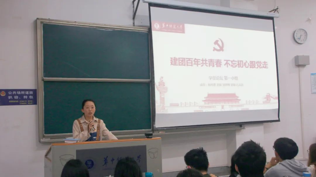 学员论坛环节,来自物理学院学员代表翟子昊同学以“十九届六中全会精神、汲取奋进智慧力量”为主题,从十九届六中全会议程、核心内容与成果、核心精神三个方面进行了分享,并发出“当代青年必须要深刻认识到中国特色社会主义现代化历史性成就和历史性变革,以时代为己任,努力做好答卷人”的呼吁;新闻传播学院学员代表杨伟艳、刘依同学及其小组成员以“建团百年共青春,不忘初心跟党走”为主题,以讲解与视频结合的方式,从百年建团历史回顾、党团关系演变以及习近平总书记对党团关系的叙述三方面进行分享,希望同学们都能在思想上、行动上向党靠拢,不忘初心砥砺前行。