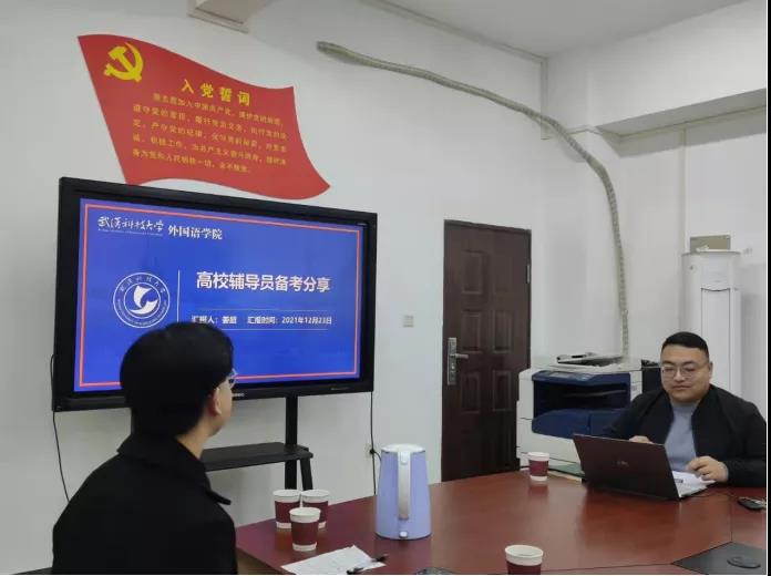 随后,来自武汉科技大学的姜超老师就辅导员招聘信息的寻找方法和考试时间向同学们进行了解答。不仅如此,姜超老师还对辅导员任职条件以及无领导小组面试的技巧向同学们进行说明。