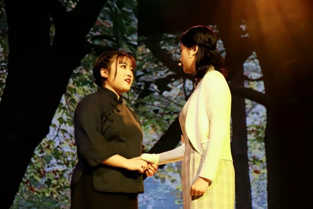 我院本科生刘雨菲饰演创校之初的教师,她眉头紧锁地走上舞台。她用一番慷慨陈词表达了她对办学决议的坚决支持,面向校长接下揽才重任。