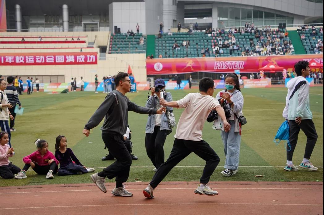 华新在线讯(见习记者邹晗怡)11月6日下午,男子4×100米接力赛在佑铭体育场举行。我院21级研究生蒋国亚、张恒凯,21级本科生马宇豪、邓子青参加比赛。