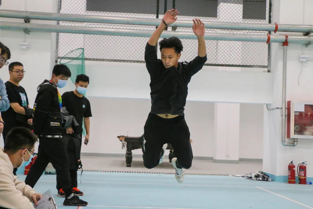 我院参赛同学充分利用等候时间,在比赛场地进行立定跳远练习,努力调整状态,以发挥出最好水平。2021级本科生符广昌表示,虽然自己没有参加过立定跳远比赛,但他希望积极参与团体项目,和大家一起在赛场上拼搏努力。“尽力就好”是他对比赛成绩的看法。