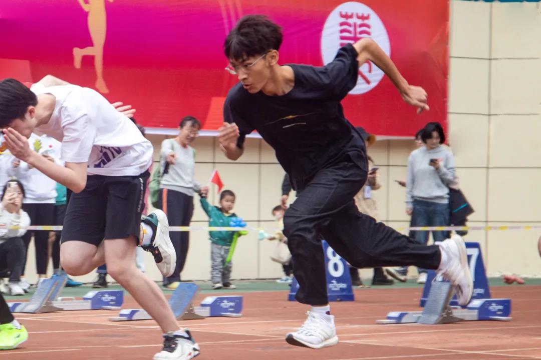 最先上场的是彭康捷。跟随队伍到达起点后,他迅速开始热身。几番调整起跑器试跑后,他决定放弃使用起跑器。裁判挥旗示意后,他关注裁判指令的同时调整起跑姿势,一声枪响,他奋力冲出,观众的加油声四起,面对来自对手的压力,他专注自我,最终顺利完成比赛。