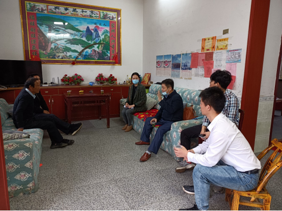 随后,在村主任的带领下,考察队一行人来到了贫困户黄新祥的家里,走进黄大伯家是一片较大的庭院,庭院里是一层两层式的小楼。