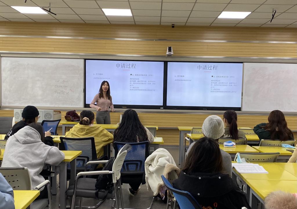 随后,她详细讲述了自己申请国外院校的流程,并让同学们注意有关海外留学的一些政策,这件事很容易被忽略,但却直接决定留学的成功与否。