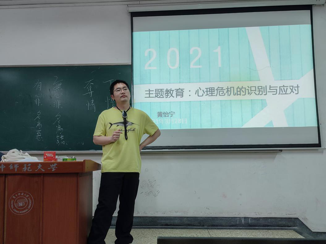 基于大学生群体普遍焦虑的社会现象及同学们的相关反映,黄怡宁为大家带来“心理危机的识别与应对”主题教育。他以世界卫生组织的健康标准为依据,提出“食得快、便得快、说得快、走得快、睡得快”是身心健康的基本要求。