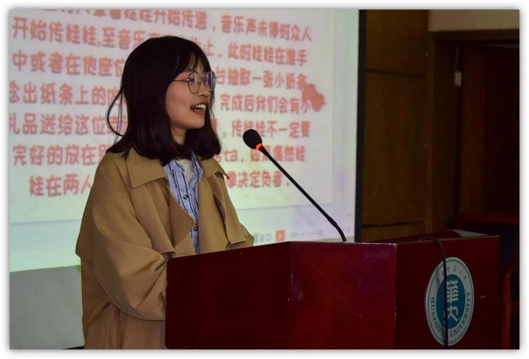 “故事接龙”游戏中,“店小二与被追杀的侠客”等三个故事引得欢呼声不断。“你做我猜”游戏需要考验团队合作的默契度。其中,物理科学与技术学院的四名男生表现出众,顺利完成“百鸟朝凤”等高难度词汇的考验。