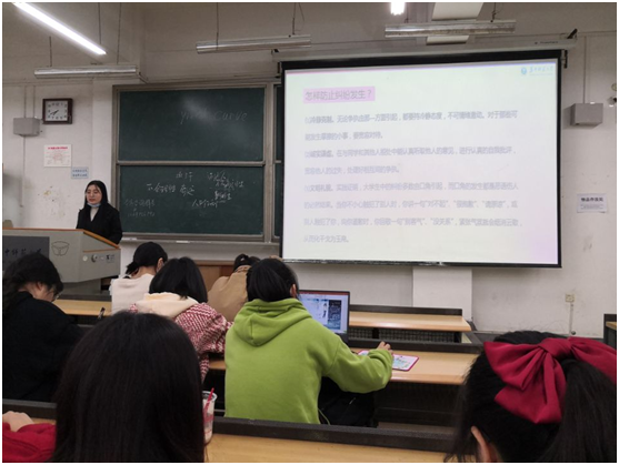 辅导员李红玉向同学们介绍了“大学生校园人身安全”板块,告诉同学们要有基本的防备之心,时刻牢记“害人之心不可有,防人之心不可无”;其次是要拥有一双识人的慧眼,保护自己;在遇到问题的时候要懂得求助他人,及时止损。此外,辅导员李红玉还在这一板块强调了宿舍用电安全,提醒同学们不要在宿舍使用大功率电器。在介绍“校园纠纷”板块时,辅导员李红玉将“复旦投毒案”作为案例警醒同学们在遇到纠纷时要保持冷静克制,无论争执由哪一方引起,都要持冷静态度,不可情绪激动;要保持诚实谦虚,在与人相处中认真听取他人意见,进行自我批评,宽容他人过失。
