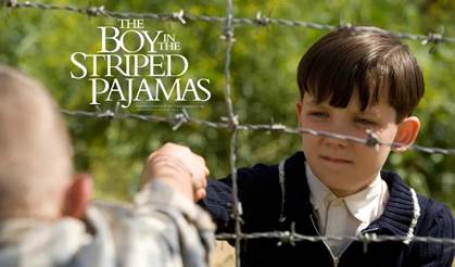某日布鲁诺决定,偷偷换上“条纹睡衣”去铁丝网的另一边,以便帮助施穆尔找到他的父亲……