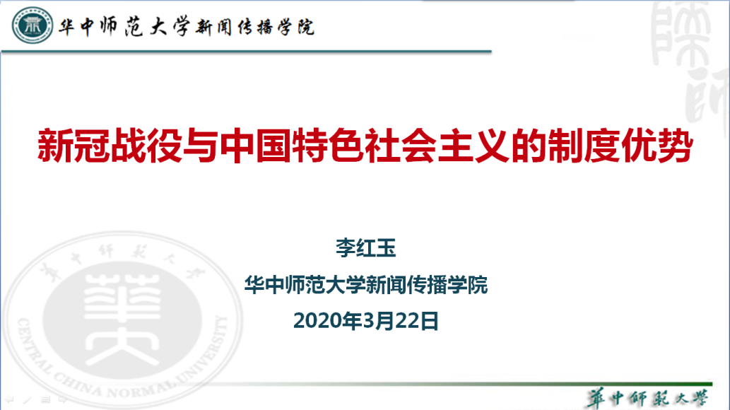 在第二部分“新冠战役体现中国特色社会主义的制度优势”中,李红玉引用了世界卫生组织现任总干事谭德塞的话:“中方采取的从源头上控制疫情的措施令人鼓舞,尽管付出很大代价,但为世界争取了时间。”中国特色社会主义制度优势在本次疫情中得以充分展现:党的集中统一领导制度的显著优势体现在我们可以“集中力量办大事”,各地都迅速建立了联防联控的工作机制,果断采取了最全面、最严格的防控,各地医疗队驰援湖北;人民当家作主的优势体现在本次疫情中人民群众以主人翁身份,积极响应党的号召,“春节期间不外出”,采取“居家隔离”的方法。在此次疫情中,也体现了中国的精神:“国而忘家,公而忘私”、“众志成城,守望相助”、“大爱无疆,救死扶伤”。