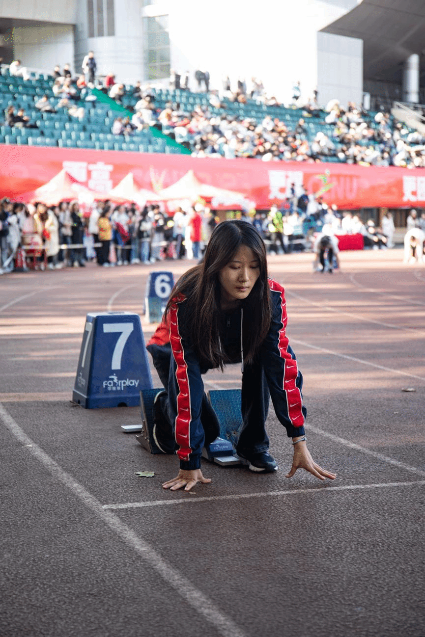 第8组第2道的李佳一同学去年参加了女子四百米比赛,今年再次报名一百米比赛。赛后,她鼓励大家积极参赛,并表示:“运动会开办的目的就是让大家多锻炼,同时还能愉悦身心,缓解压力。”