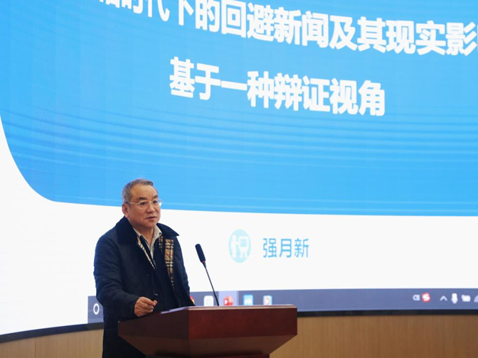 武汉大学新闻与传播学院院长强月新教授作题为“后真相时代下回避新闻及其影响——基于一种辩证视角”的主题演讲。他介绍了回避新闻的概念,并提出中国语境下对回避新闻的探讨处起步阶段;他指出,“后真相时代”在时间维度、外部表征、内在关系上契合回避新闻的背景,同时“后真相时代”带来新闻过载与泛化、群体极化与冲突、媒体公信力受到挑战等后果,并最终导致人们产生新闻回避行为;最后,他从辩证角度提出回避新闻会带来公共性衰退与社会共同体消解的风险的负面影响,同时也会带来“异化”环境下的主体性重构与新闻业革新等积极意义,他认为,在后真相的喧嚣中,成为“社会真相体制”及“理性思考”的示范者和推动者,是新闻业坚守其公共属性、践行其社会责任和传播使命的必然。