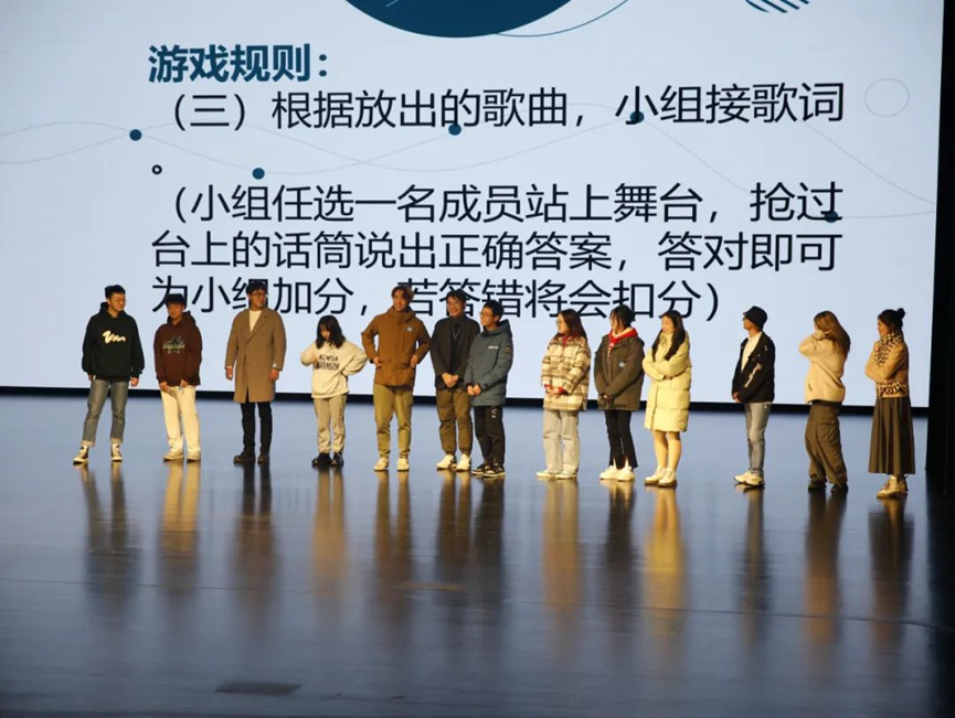 紧接着的互动问答环节考验了小组内成员的默契和智慧。从一个字回答问题到编成一个故事,再到派小组成员听歌曲高潮部分接出歌词,同学们表现出极大热情,现场笑声不绝于耳,每个环节都为活动增色不少。传声筒你画我猜环节将小组推向了舞台,通过身体语言传递信息,部分影视剧台词更是让整个活动达到高潮。