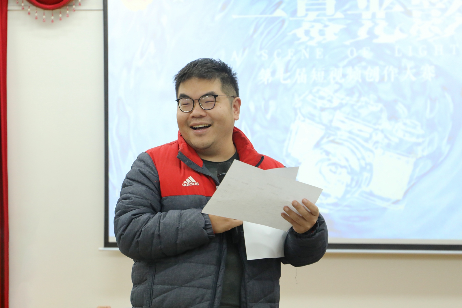 华新在线讯(见习记者 樊豫 吴荐轩)12月9日晚,第七届“一幕光影”短视频创作大赛决赛暨颁奖典礼在我院报告厅举行。