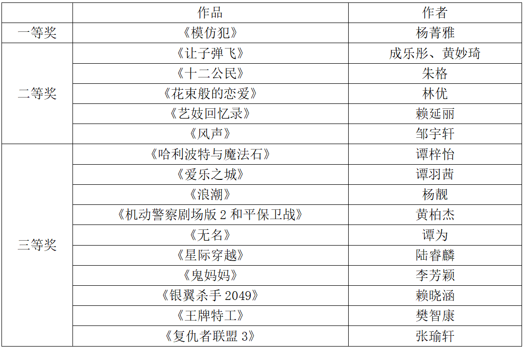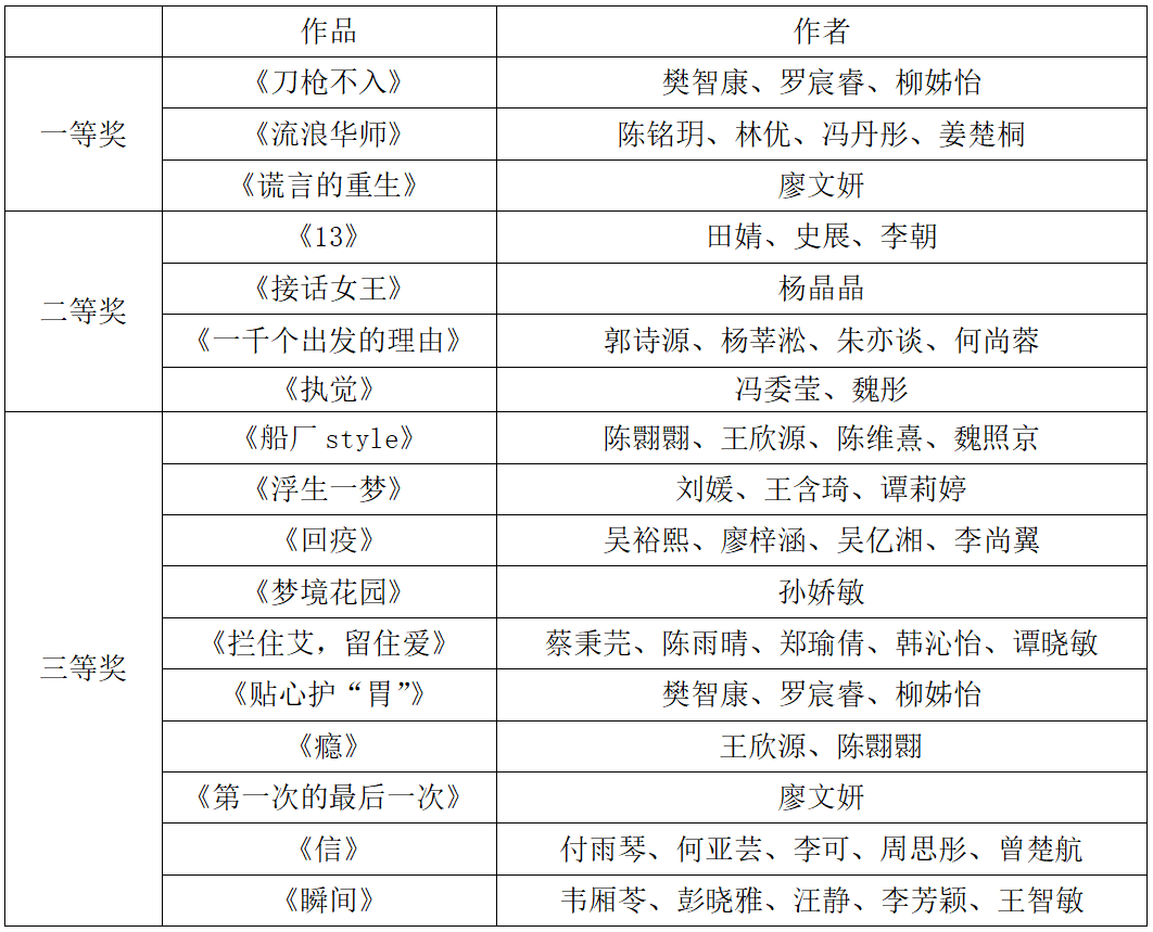 获奖名单