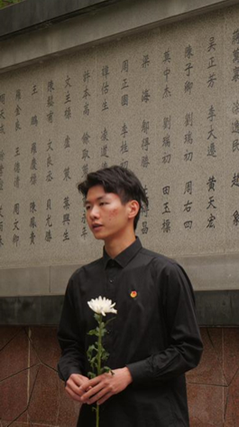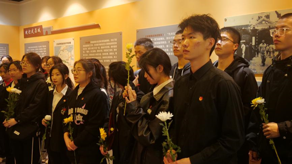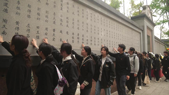 2204班班长李佳一则以生动的话语分享了革命烈士卢德铭的生平。在众烈士“精神不死”的主墓碑前,众人依次敬献鲜花,而后轻抚革命烈士名字,以表哀思。
