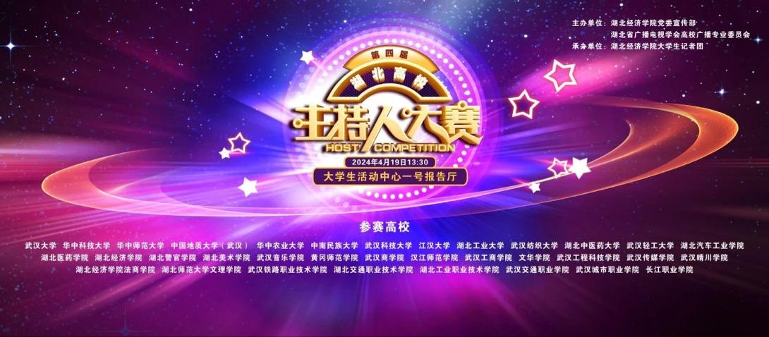 2024年4月19日,第四届湖北高校主持人大赛在湖北经济学院隆重举行,本次大赛由湖北高校广播专业委员会与湖北经济学院联合举办,来自湖北省34所高校的同学同台竞技,现场评选出一等奖7名、二等奖11名、三等奖16名。我院2023级播音与主持专业刘天心荣获一等奖。