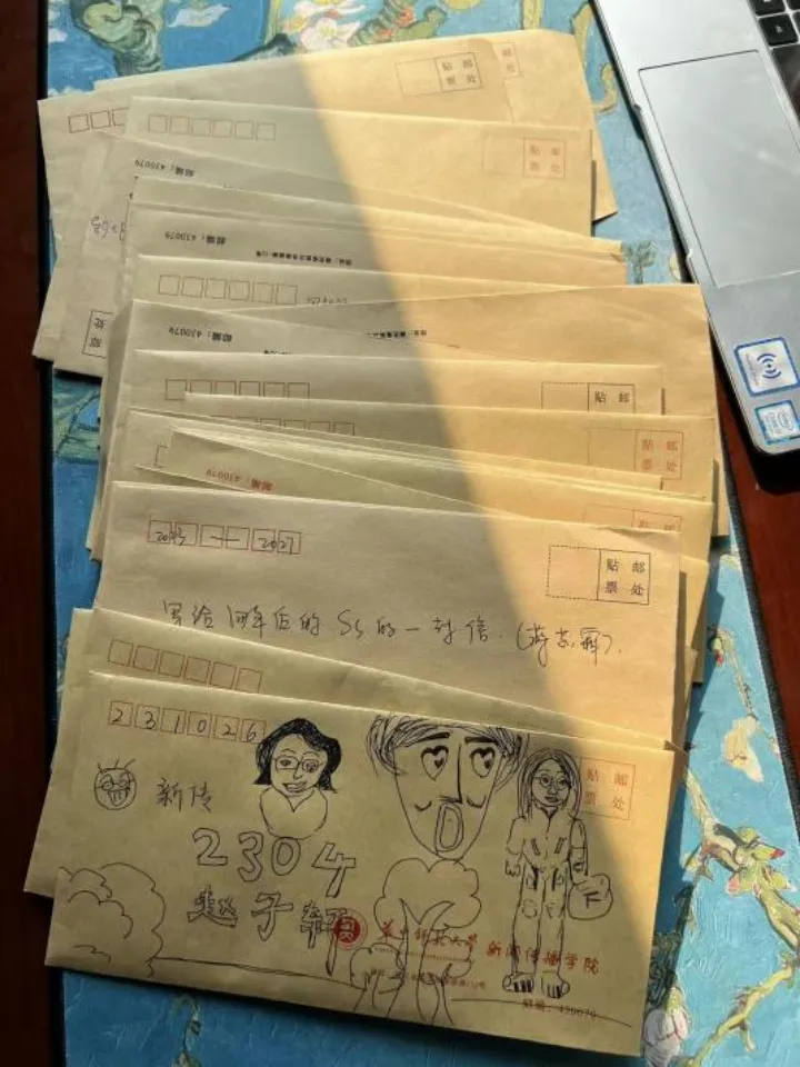 白嗣新老师会在大一进行一次主题班会“你好,未来的我”。让各位同学聊一聊进入大学后对自己未来的计划和期待,根据学生们的具体情况进行分析和引导,帮助学生树立目标。之后,学生们用统一的信封和信纸,写下与四年后自己的对话。这封跨越时空特殊的信件,在大四毕业汇报演出中由学生自愿选取信中部分内容与各位同学、朋友、家人分享。