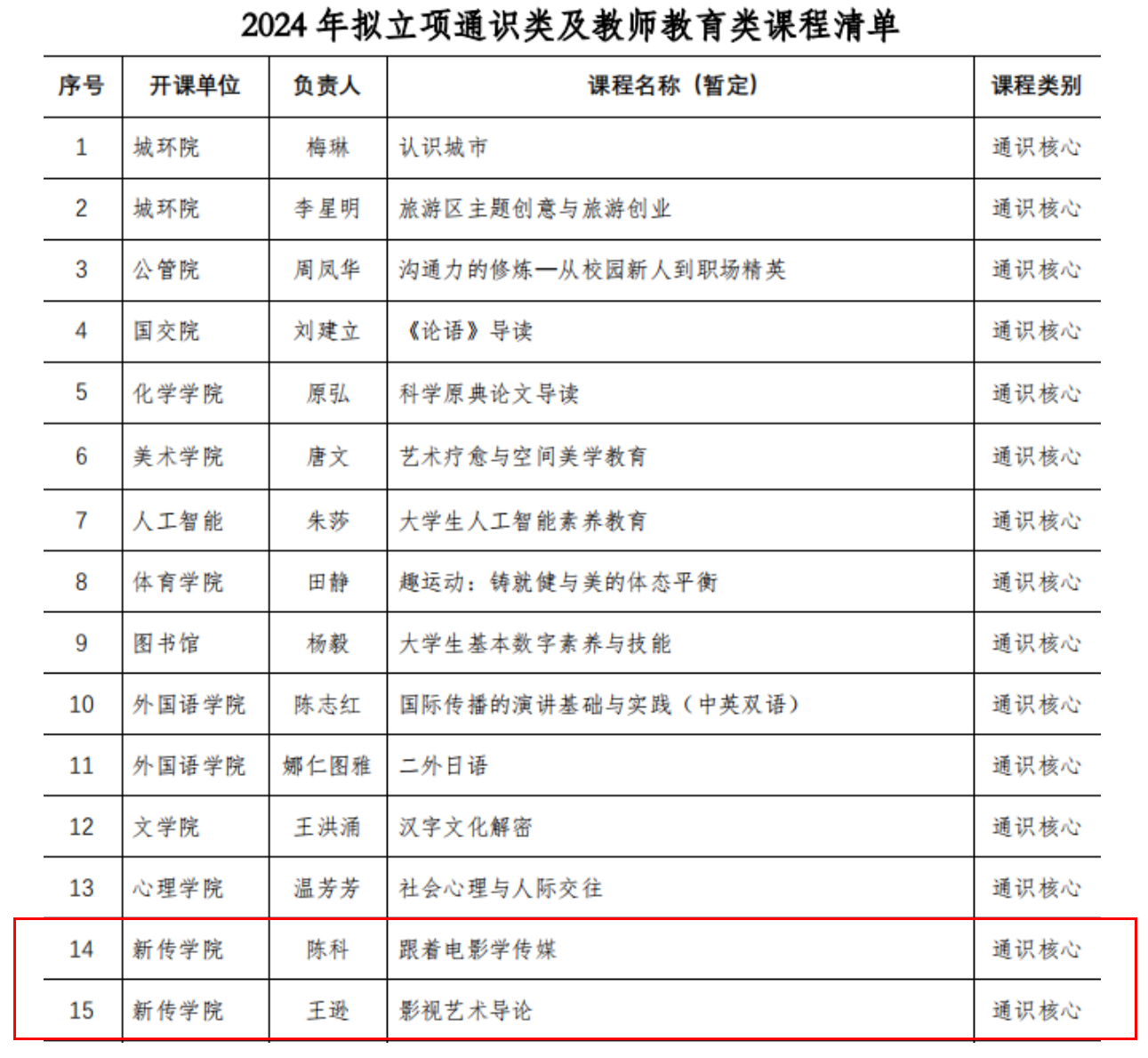 华新在线讯(通讯员刘漾)为进一步深化教育改革,我校自2015年开始即遴选建设本科通识教育核心课程。5月23日,校本科生院发布了《关于2024年通识类及教师教育类课程建设立项的通知》,其中,我院陈科副院长申报的《跟着电影学传媒》和王逊老师申报的《影视艺术导论》课程成功入选建设项目名单。