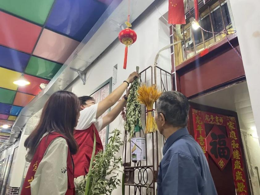 在体验了传统文化和巷子文化之后,学生们为老人们送去了端午香包和绿豆糕,并将艾草细心地挂在他们的门楣上。在与老人们的交流中,他们讲述了自己小时候过端午节的情景,如何包粽子、赛龙舟、挂艾草等。这些传统习俗对他们来说不仅仅是一种文化传承,更是一种情感的寄托和回忆。