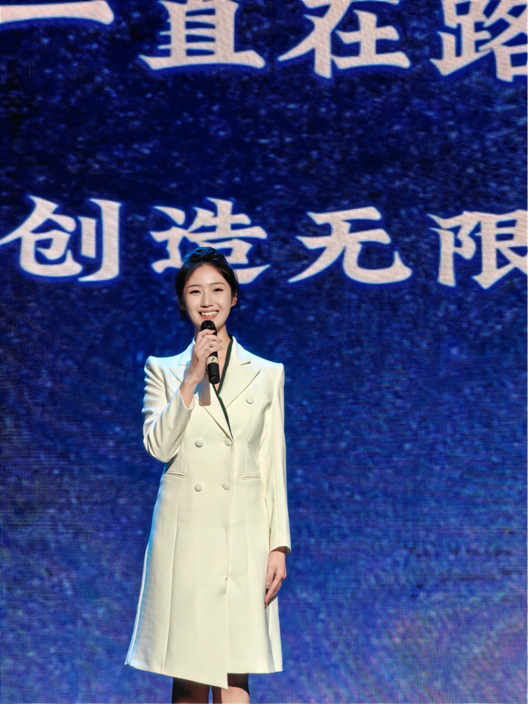 张希则通过“主持人、讲解员、记者”身份转变的经历故事来表明自我信心:“一直在路上,就会创造无限可能”。在模拟主持环节她与数智人进行对话,探访武汉科创园,为现场观众展现了智能湖北的优势,最终也收获“银奖”。