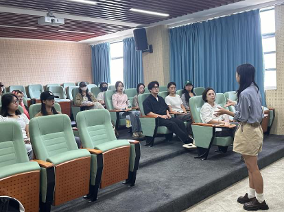 同时,2024级硕士研究生牛禾然作为华师播音优秀的本科毕业生代表,也跟同学们分享了自己的学习经历,她回忆起自己大二时的迷茫与探索,讲述了自己是如何在众多选择中逐渐找到适合自己的方向。牛师姐提到,当时她积极参加各种播音主持的实践活动,从校内的小型朗诵会到校外的实习机会,每一次经历都像是一盏明灯,照亮她前行的道路。她还分享了在这个过程中遇到的挫折,如在一次重要的主持比赛中失利,但她将这次失败转化为动力,不断改进自己。师姐的分享充满了真诚和感染力,同学们都听得津津有味,觉得受益匪浅。
