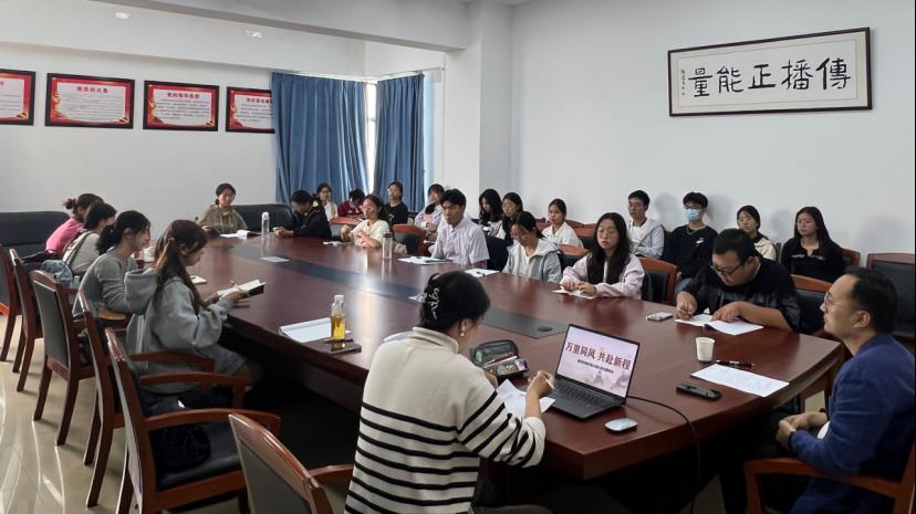 桂香幽然,金秋已至,2024年10月14日,新闻传播学院2402班在学院会议室正式迎来了开学的第一次班会。秋风起,征程亦起,这次班会意在增进师生间的联络交流,为同学们未来四年的发展规划打牢基础,定下基调。班主任刘征老师和2402班全体学生共同参与了本次班会,班长杜俏彤同学主持。