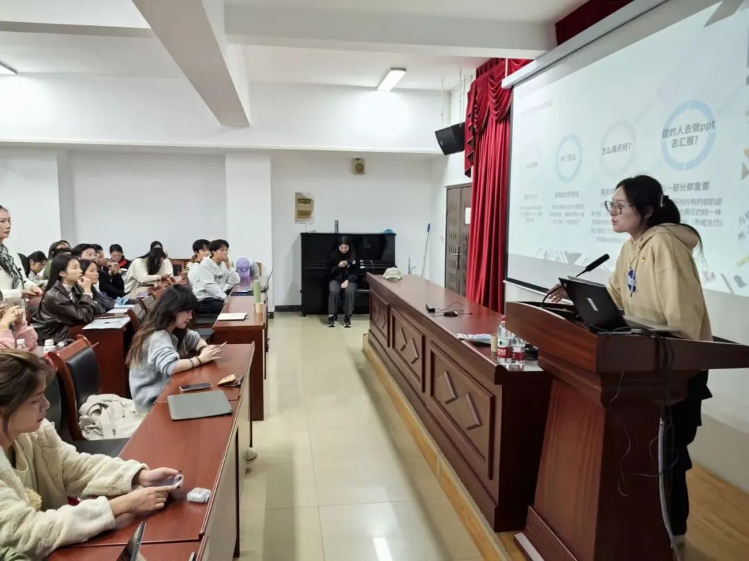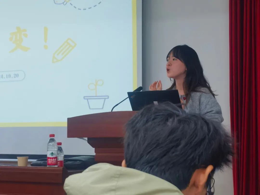 接着,何尚蓉以“如何打造‘六边形战士’”为主题发表个人学习经验。她提到,大学生应学会了解、遵守、运用规矩,规矩是一切活动的前提与依据。同时她着重强调把握信息差、明确阶段性目标的重要性,并以个人经历生动阐述了如何拥有正确心态,摆脱高中思维以尽快适应大学生活。对于学习方法,她还提出五胜法,即勤奋努力、保持谦逊,少说多做。分享最后阶段,她表达了对2024级新生蜕变的期望,并回答了相关问题,提出考试提前准备,大一应打牢基础等言简意赅的建议。