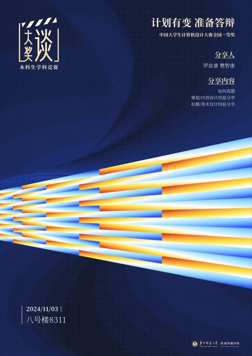 华新在线讯(通讯员 樊豫)为提升我院学科竞赛发展水平,扩大科创育人的效果,挖掘学生的创新潜力,我院陆续开展了本科生学科竞赛“大奖谈”系列活动。我院三支在全国大学生计算机设计大赛中获得佳绩的队伍,先后为同学们分享了获奖经验与感悟。
