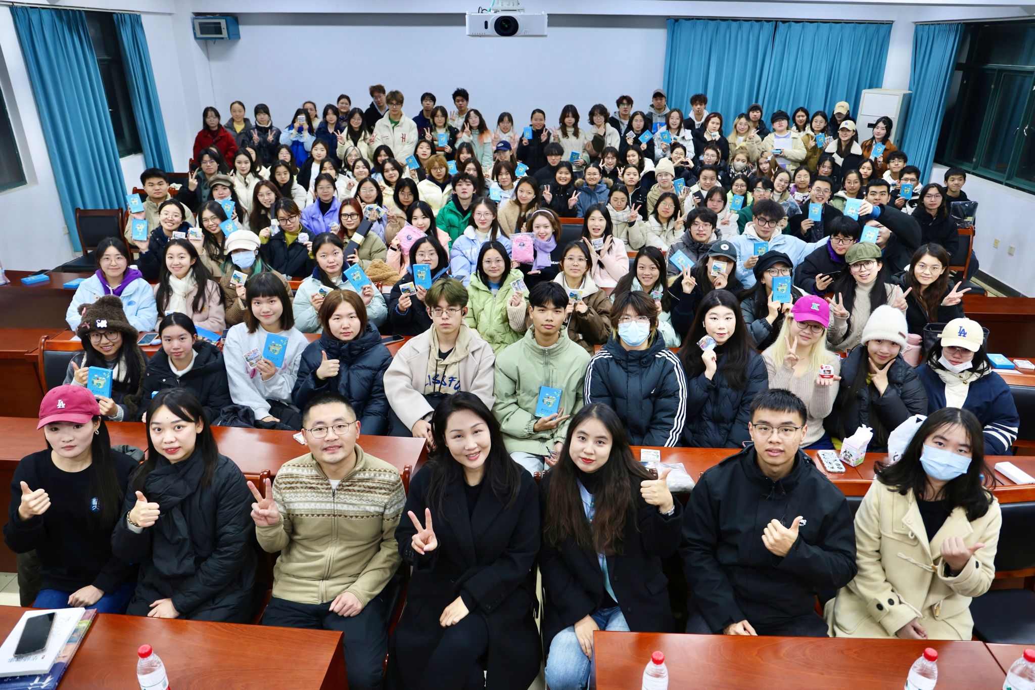 随后,罗老师向同学们介绍华中师范大学教育发展基金会公众号,鼓励同学们多多关注公益及捐赠项目。为感谢同学们对基金会的支持,校友会给同学们准备了徽章盲盒和抽奖活动,奖品包含华师书签、颈枕和联名卫衣。