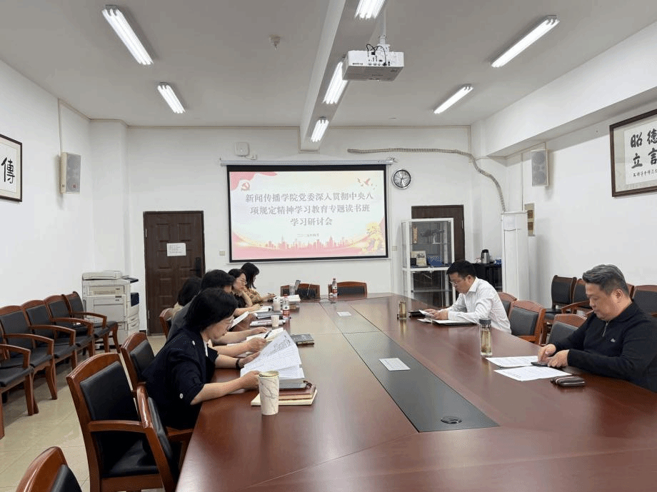4月16日下午,新闻传播学院党委召开专题会议,开展深入贯彻中央八项规定精神学习教育专题读书班第二次集体学习。学院党委委员参加学习研讨。