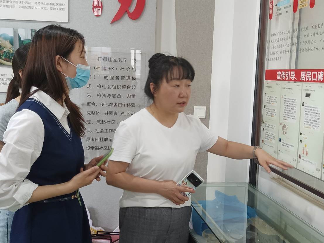 华新在线讯 (通讯员 张祎婷)为深入学习贯彻习近平新时代中国特色社会主义思想和党的二十大精神,发挥学生党员的先锋模范作用,2023年5月19日下午,新闻传播学院红新工作坊、春苗思政工作室学生代表在李鸿老师的带领下走进江汉区民权街道打铜社区。