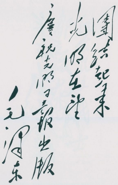 1949年6月16日,毛泽东为庆祝光明日报出版题词:团结起来,光明在望。