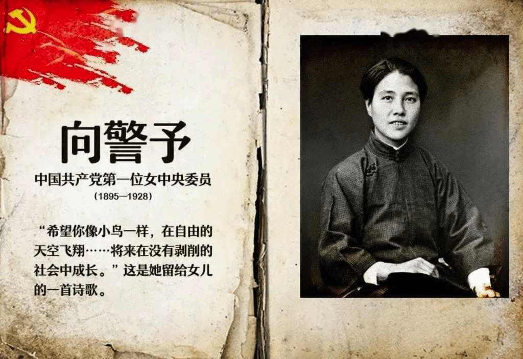 向警予(1895年9月4日~1928年5月1日),女,原名向俊贤,1895年生于湖南溆浦县。她是中国共产党早期领导人及创始人之一,女权主义领袖、无产阶级革命家、妇女解放运动领导人之一。在有迹可循的史料里,她是中国共产党唯一的女创始人。1928年3月20日,由于叛徒的出卖,向警予在法租界三德里被捕,同年5月1日向警予被押赴余记里空坪刑场,终年33岁。向警予2009年当选“100位为新中国成立作出突出贡献的英雄模范人物”。