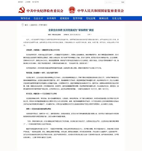2015年10月27日,中央纪委监察部网站刊发“《纪律处分条例》背后的案例故事”系列文章第三篇,以案例形式解读《中国共产党纪律处分条例》第八章“对违反廉洁纪律行为的处分”的相关规定。山东省淄博师范高等专科学校原党委书记、淄博市教育局原局长张洪亮“全家非法敛财,6人落网”案,成为“纵容、默许配偶、子女及其配偶等亲属和身边工作人员利用党员干部本人职权或者职务上的影响谋取私利”的典型案例。