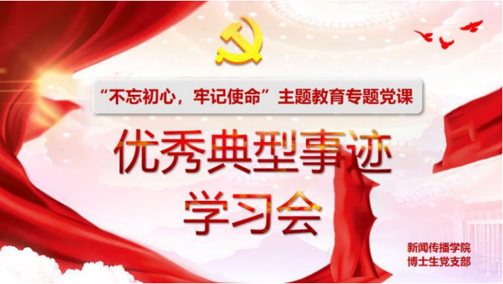 2019 年 10 月 28 日,我院博士生党支部在学院会议室开展了“不忘初心、牢记使命”主题教育专题学习,支部书记周雯以“优秀典型事迹学习会”为主题学习内容,给党员们讲党课。