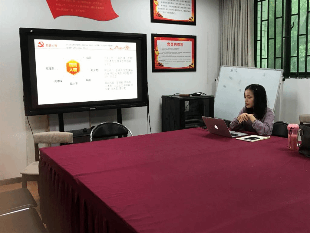 2019年10月25日,2018级研究生学硕党支部在学院会议室进行了党课学习,由党支部书记张梦婷给党员们授课,讲解“知党史,学国史;记初心,担使命”的主题学习内容。除两名同志在外留学交换,一名同志因事请假,全体党员到会。