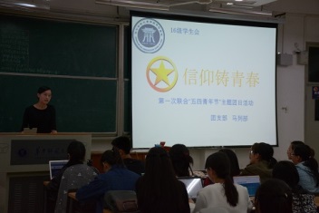活动开始前,团总支杨悦对团日活动的工作做了总结并提出建议:“我们之前的团日活动开展得不错,但都是以班为单位开展的,以后可以几个班一起,也可以和别的学院、别的学校一起开展,这次年级联合的团日活动算给大家是开了个头。”