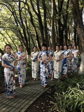 我院的表演被安排在节目单上第二位,组成我院表演队的是十名女性教职工:韩君华、陈晋、陈俊峰、胡瑛、称欧阳、段然、王娴卉、骆莎、李鸿、沈思。队伍由工会女工委员汪芸领队。据了解,我院表演节目“江南水乡,烟雨濛濛”为呼应活动“民族风”的号召,表演服装以旗袍为主题,伴奏旋律则选择了无唱词版《江南》。灵感来源于江南水乡。“因为我们的老师都很年轻,设计要更能凸显队伍柔美婉约的青年风采。”汪芸接受采访时笑道,“老师们都是用自己的休息时间参加排练,练习期间很辛苦,但是为了学院的荣誉,为了女工工作,大家都很给予支持,我很感谢她们。”